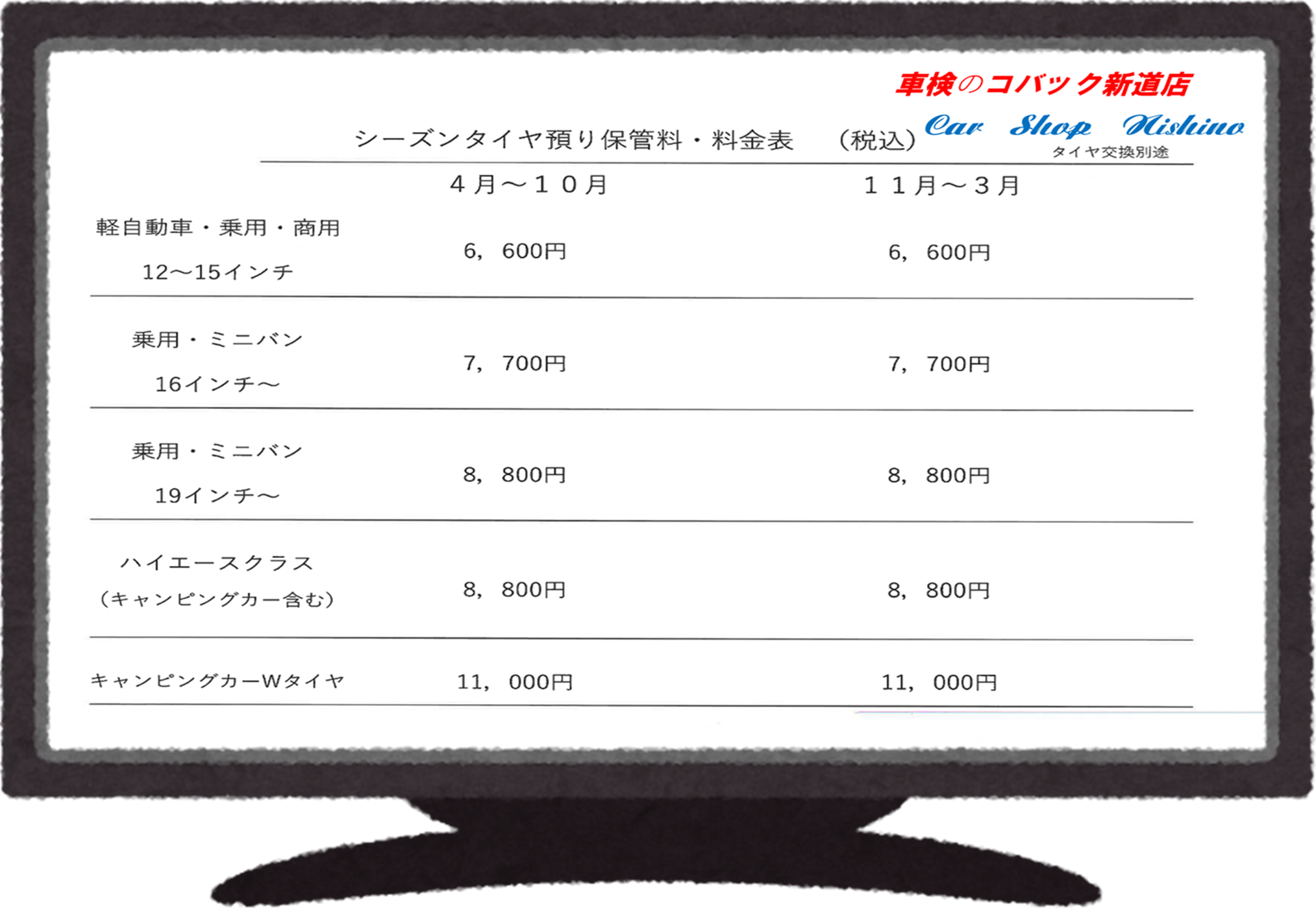 タイヤ交換価格表」 下記料金は令和7年10月1日から適用となります